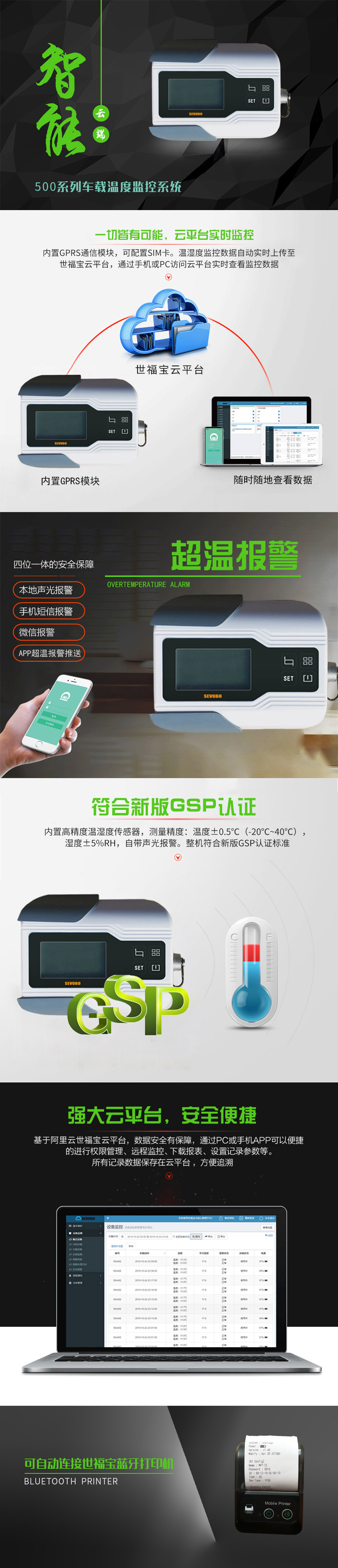 支持多种终端监测设备接入,可实时查看车、冰箱/冰柜、库、箱实时温(湿)度,实时定位,实时查看温(湿)度曲线,导出历史记录,实时预警、报警;管理功能。