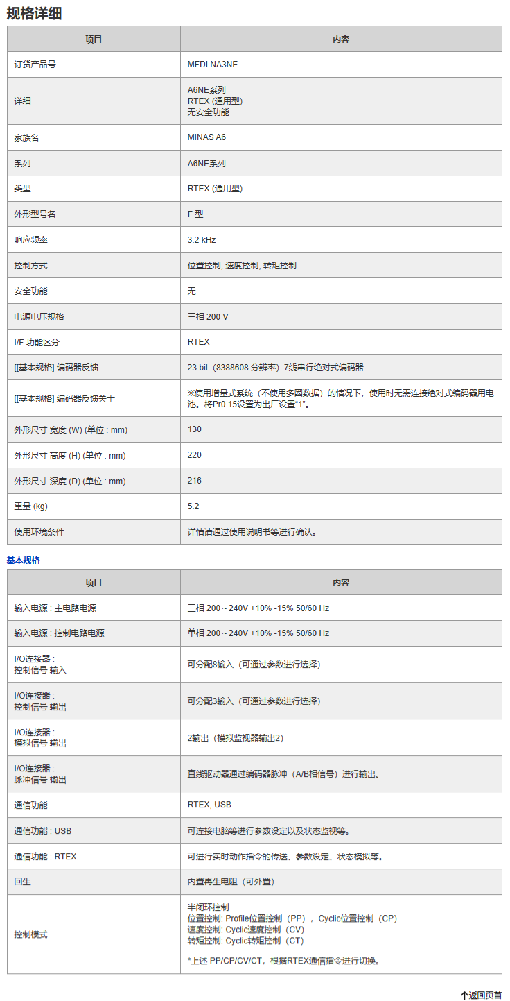 【Panasonic松下】 伺服驱动器 MFDLNA3NE