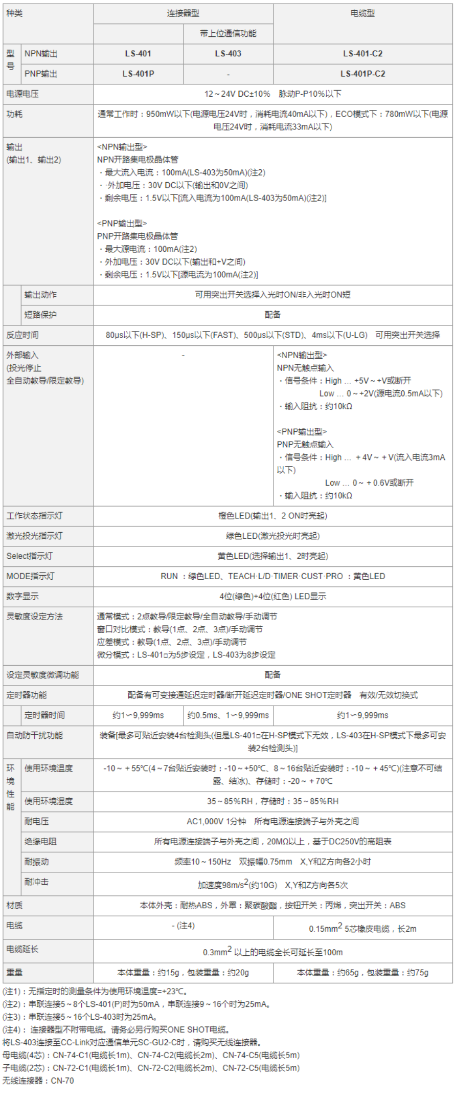 电缆型LS-401-C2装备(5芯)外部输入线。建议进行装置外部教导和停止激光投光时使用,或作为单体使用激光感应器时。 |