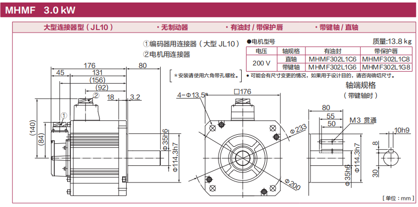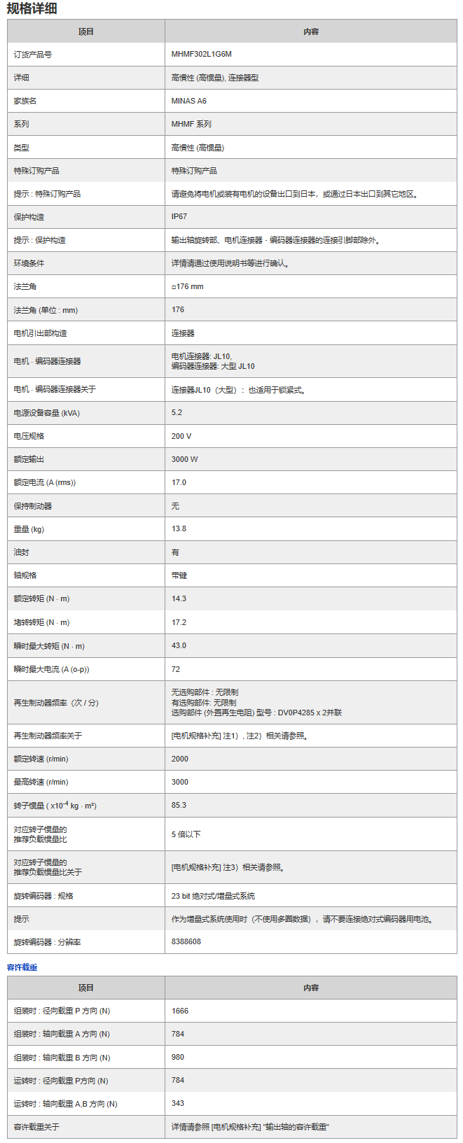 【Panasonic松下】 3kW伺服电机 MHMF302L1G6M