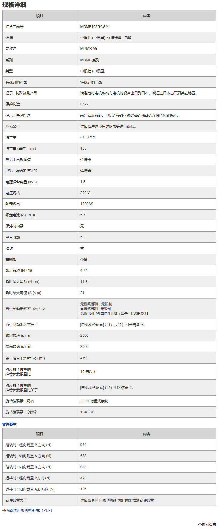 【Panasonic松下】 交流伺服电机 MDME102GCGM
