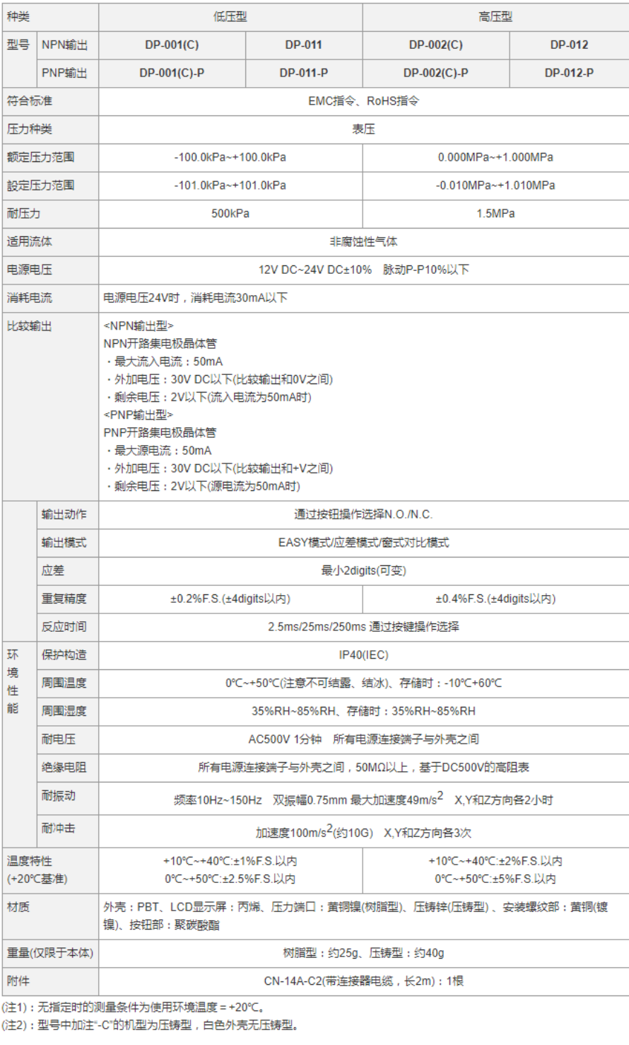 【Panasonic松下】 压力传感器 DP-101-E-P