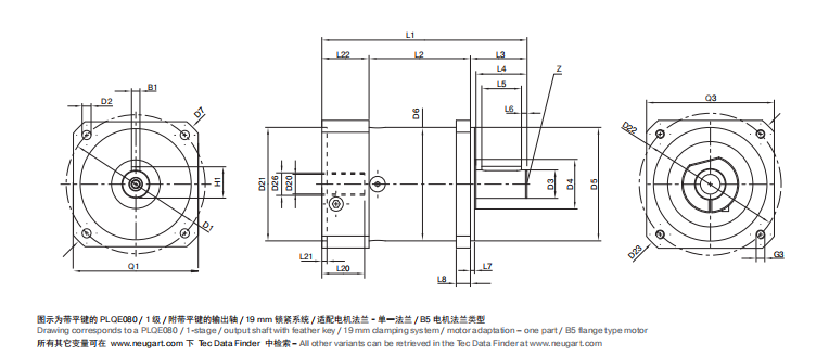 【NEUGART纽卡特】 行星齿轮减速机 PLQE080-004-SSSA3AE-E19/35/80/100/B5/M6