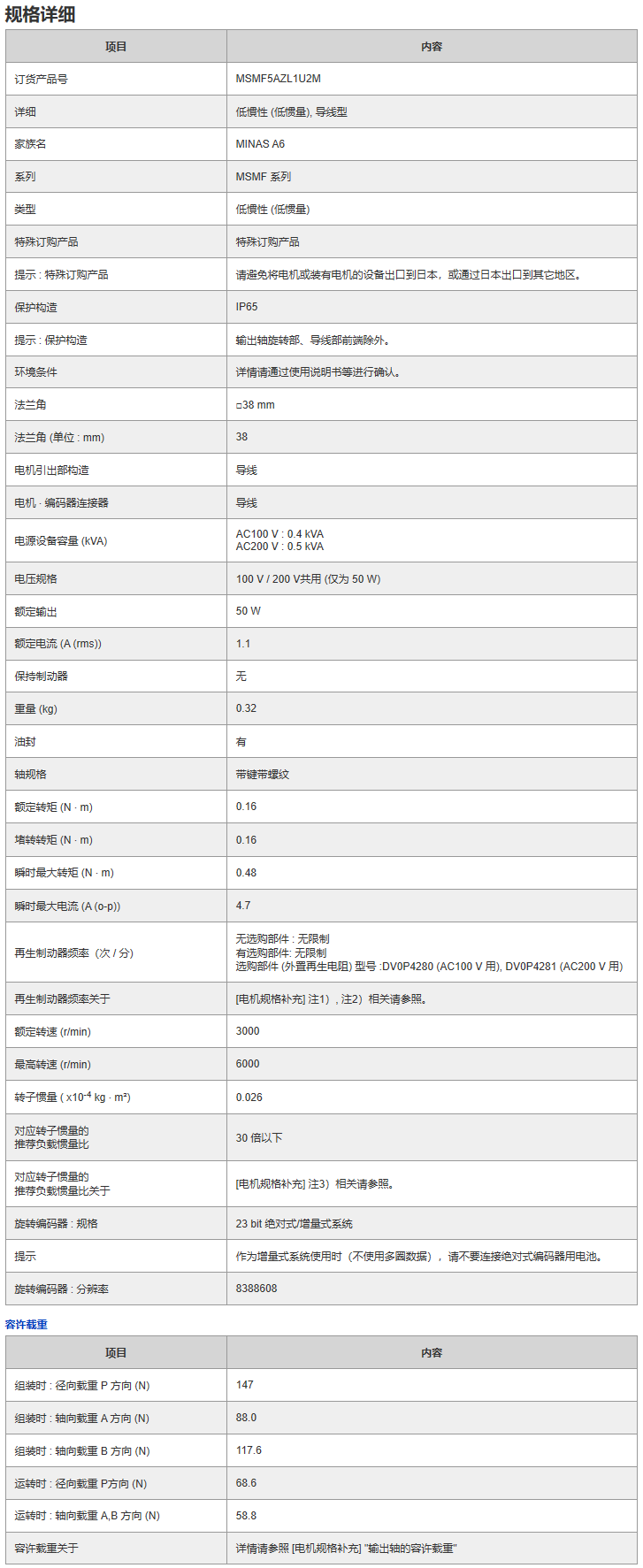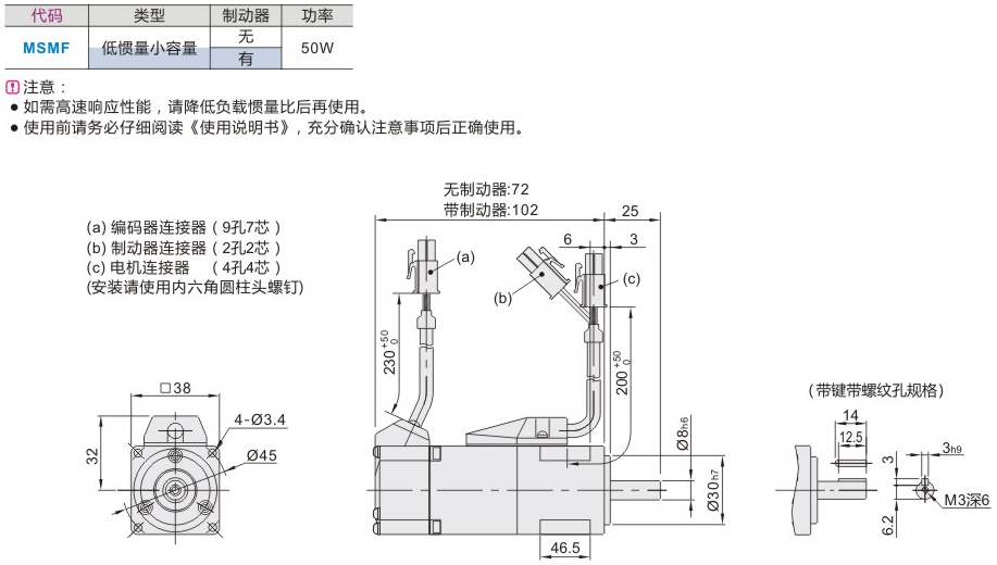 【Panasonic松下】50w伺服电机 MSMF5AZL1U2M