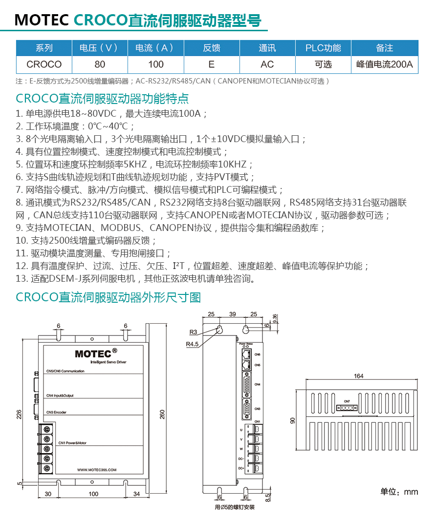 | CROCO-80-100-E-AC | 其他大功率电机 | CROCO-CAPD2A** | DSEM-JCAPD4A** | DSEM-JCAED1A** |