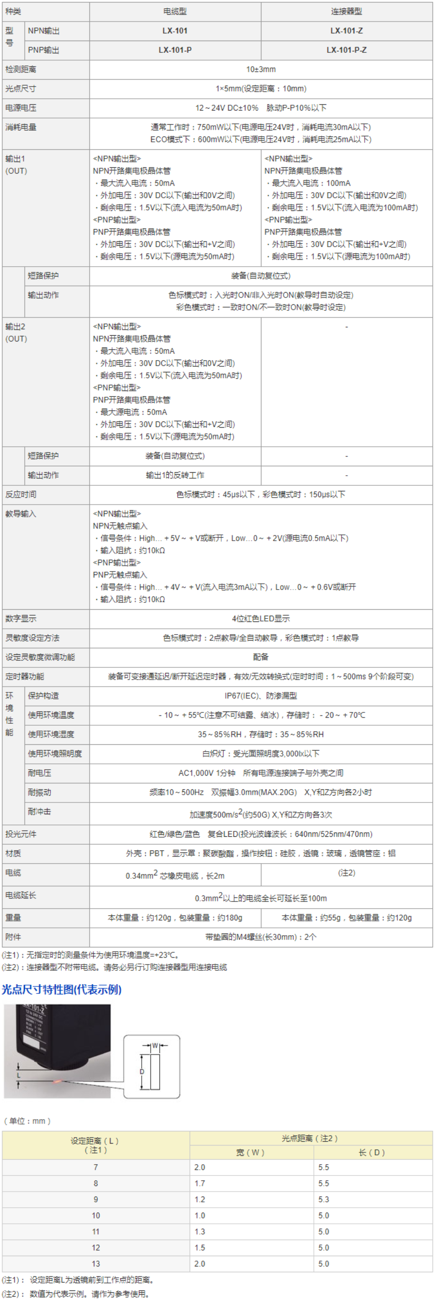 共轴反射光学系统和约1mm×5mm的极细光点使高 精度检测得以实现。