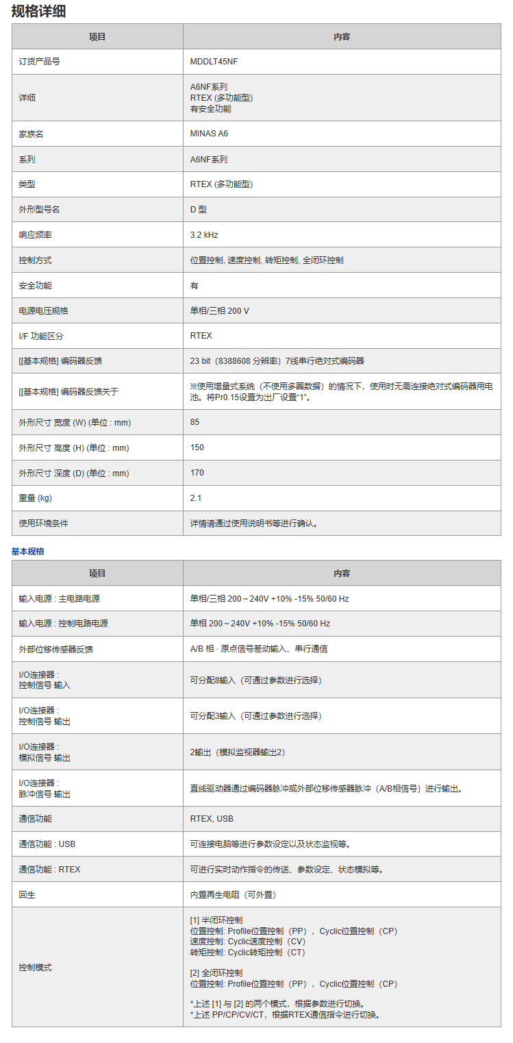 【Panasonic松下】 伺服驱动器 MDDLT45NF