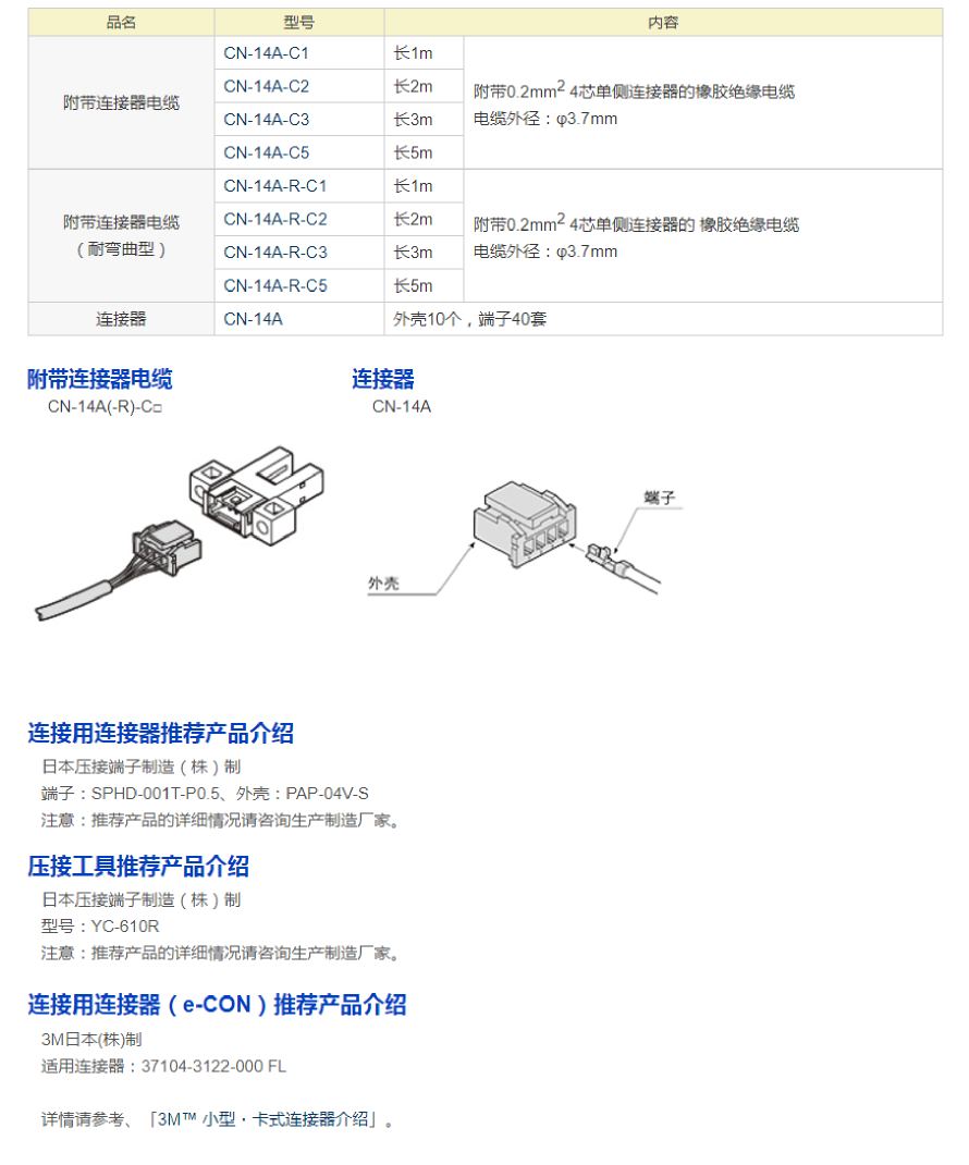 【Panasonic松下】 附带连接器电缆(耐弯曲型) CN-14A-R-C3