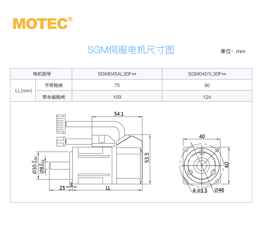 | SGM0401L30F1N | 单相220V | 100W | 3000rpm | 0.32Nm | 14线制增量(2500线) | 否 |